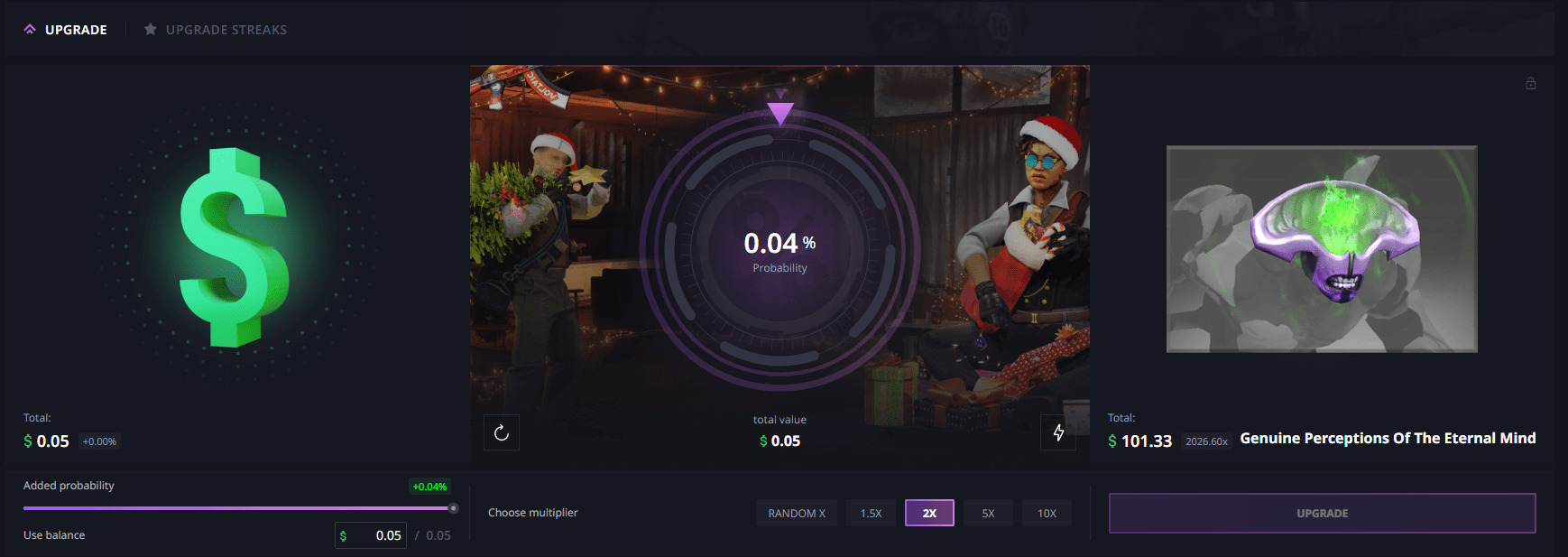 Another innovative feature is the Skins Upgrader, which allows players to trade up their existing skins for higher-value ones. This feature adds an extra layer of strategy and excitement to the platform. It’s not just about what you win; it’s also about how you can enhance and upgrade your winnings. This upgrader feature keeps the gameplay fresh and gives players a reason to return, fostering a deeper engagement with the platform.